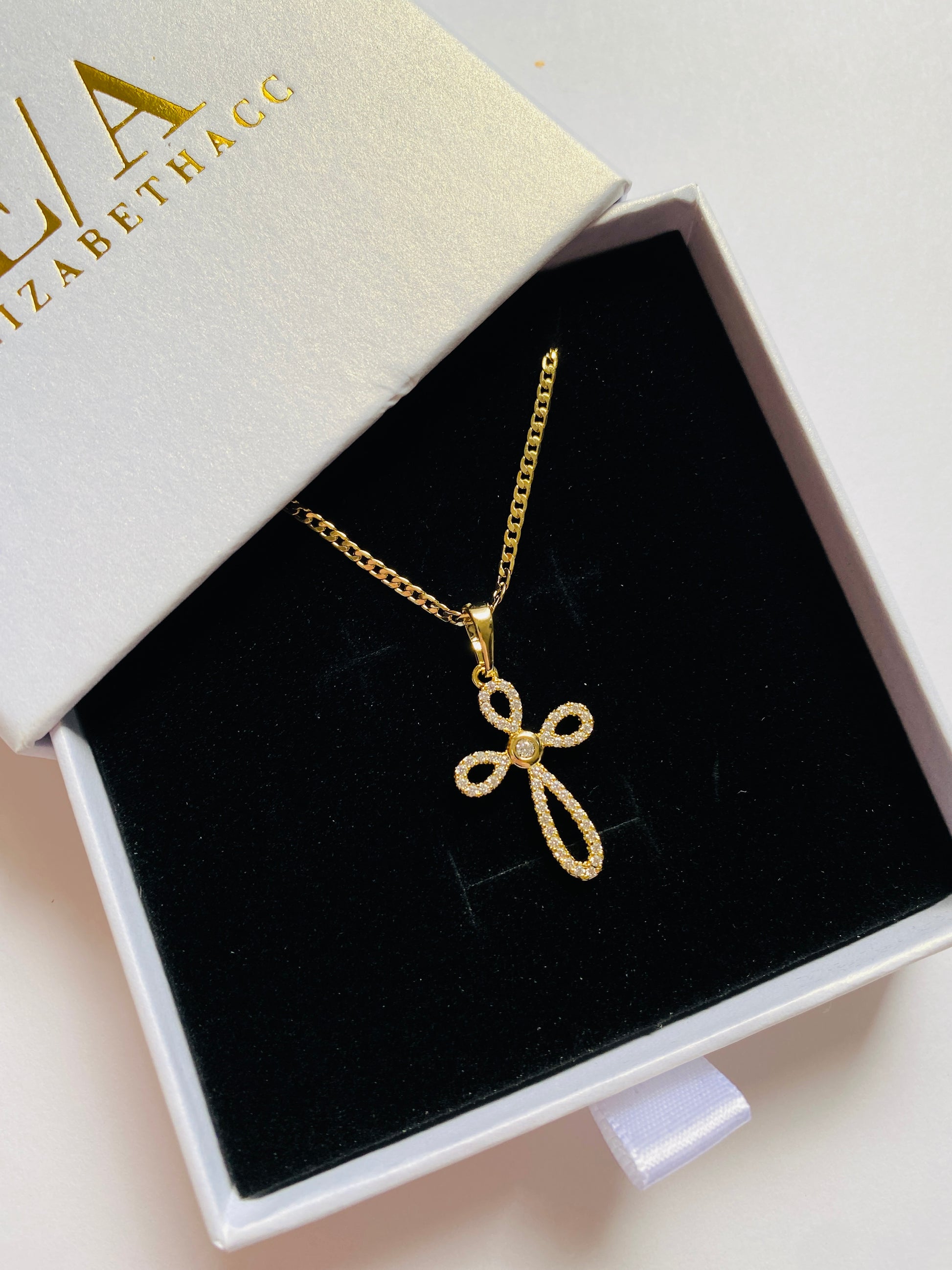 14k Gold Plated. Alloy, Copper with pendant cross with zirconium